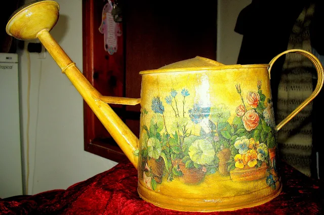 ג. לצבוע את הכלי כולו ,בצבע אקרילי בהיר מאוד עם מברשת לחה ,וליבש. אין להדביק מפית על צבע כהה כי היא נבלעת בו.